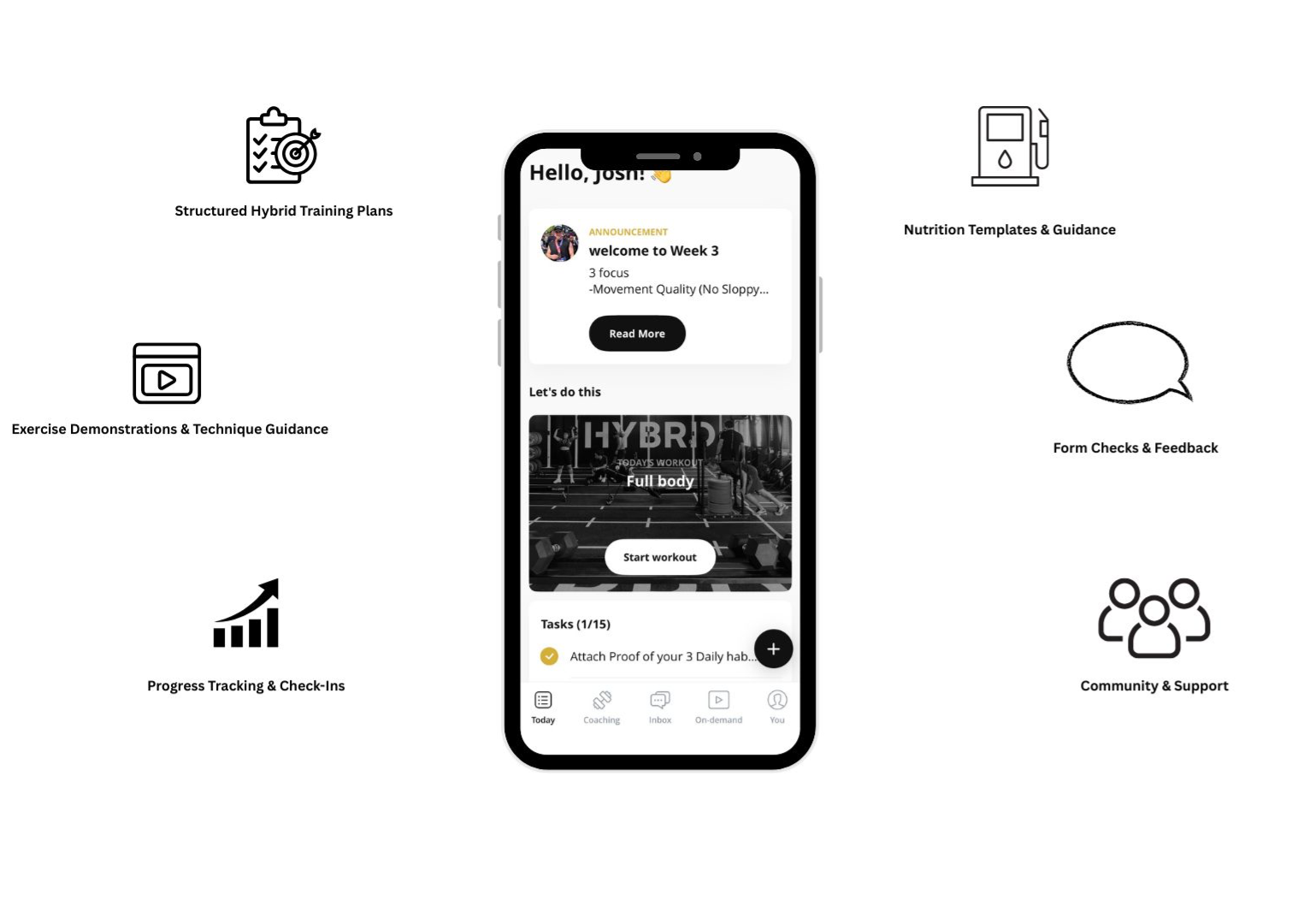 Weekly Check-Ins & Progress Tracking – detailed feedback on lifts, performance, and recovery.
